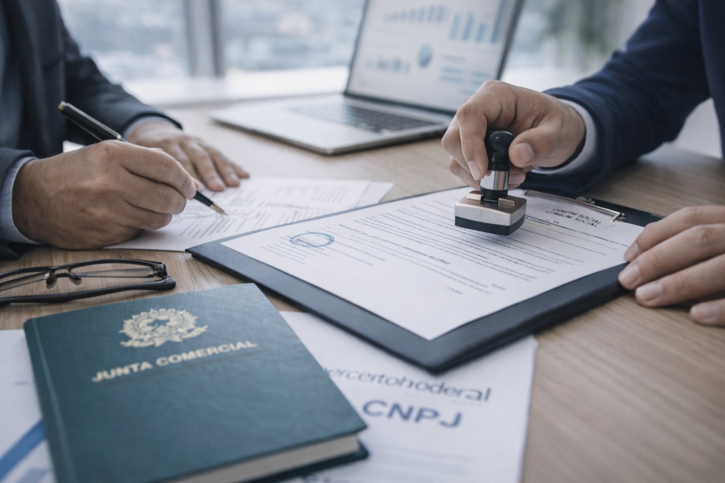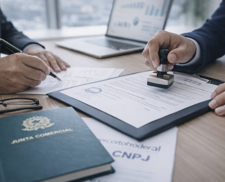 Cuidamos de todo o processo burocrático: CNPJ, Junta Comercial, inscrições e registros necessários para sua empresa nascer regularizada.